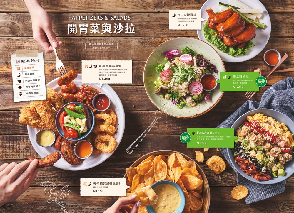 貳樓的菜單可以說是像教科書一樣厚厚的本,有各式各樣的開胃菜與沙拉~