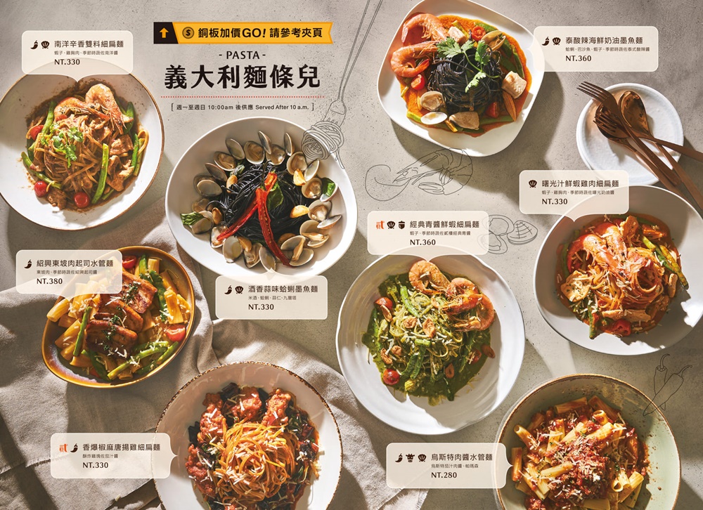 義大利麵口味也含括中、義、日、泰式,超多選擇!