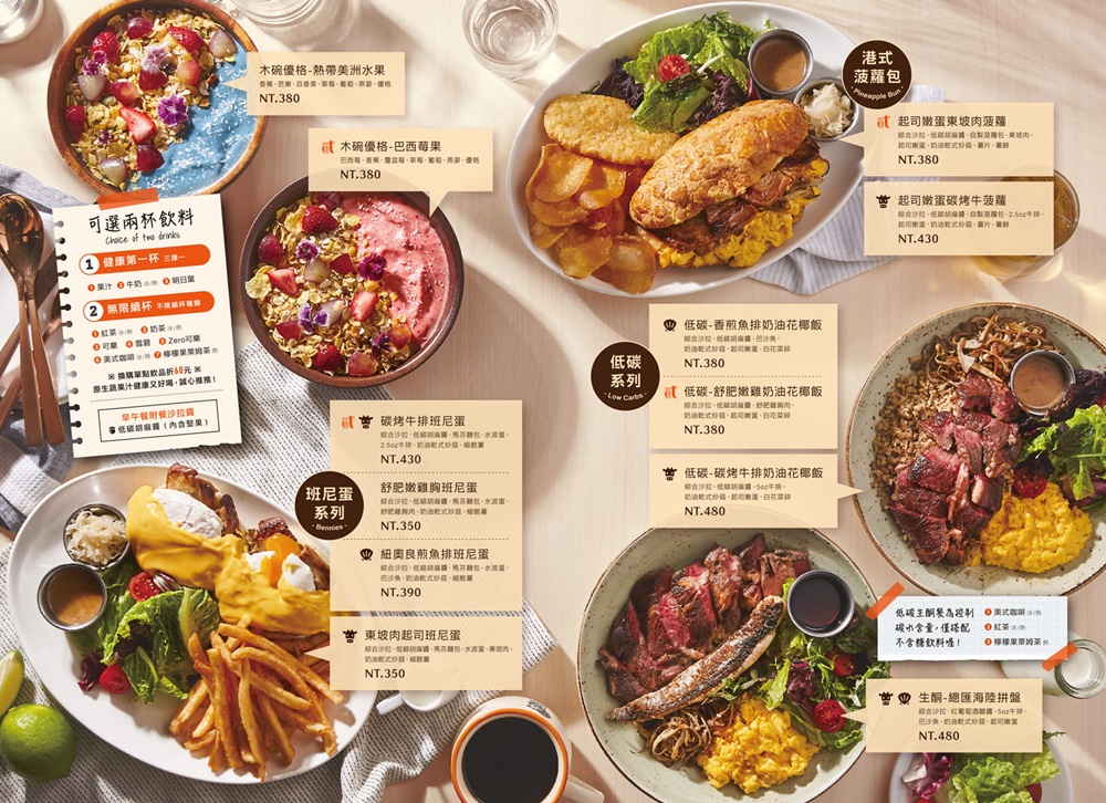最棒的是貳樓的菜單都有照片,每一種看起來都很好吃的感覺,早午餐選項也是琳瑯滿目的,看得我眼花撩亂欸!像村長一樣在減肥的也有低碳、減脂系列可以選,根本兼顧各大族群!