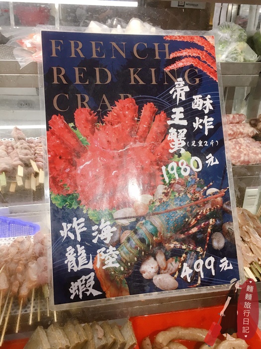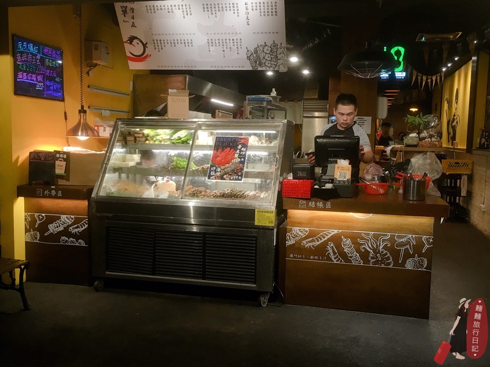 車庫鹽酥雞除了烤、炸的各式肉類外,還有很多海鮮的品項,都會貼在玻璃櫃上。