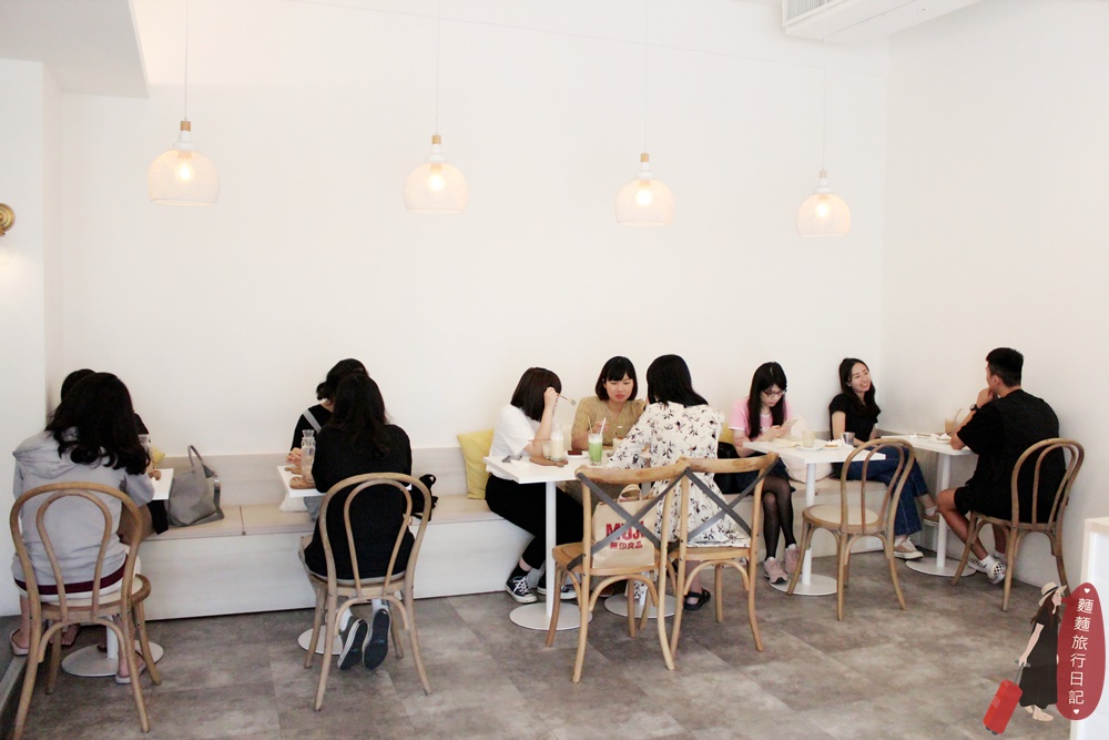 店裡面以白色系為主,簡單風格,門口落地窗的設計讓陽光可以灑進餐廳,採光很好。