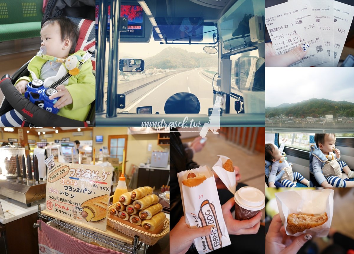 其實去河口湖有很多方式喔!!!!!!大部分沒有帶寶寶的人都會想要挑戰鐵路,不只舒適還不用擔心會有塞車的風險,幸運一點還可以搭到主題列車(比如說湯瑪士!),但就是要換車,所以我就不考慮了(帶著大包小包跟一隻小人真的很懶得換車換月台阿阿),所以我們就搭了所謂的高速巴士(就是跑高速公路的啦!!!)