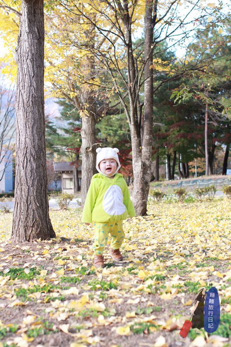 走了一大圈累了!也餓了!!我這個人旅遊走的是隨性路線(根本是懶!!!),所以沿途看到了這個不動麵的招牌,就沿著標示去尋訪囉~吃飽飯後還好波仔終於醒了,不然他都沒看到美麗的紅色葉子、黃色葉子呢!下午就讓波仔下來放風~~~