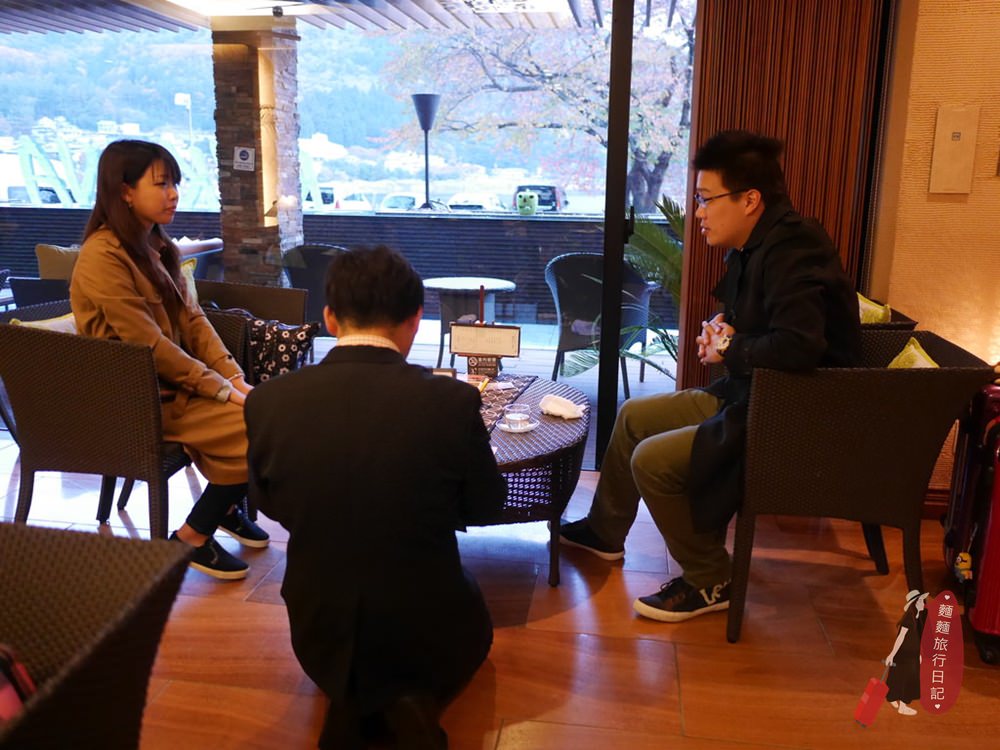 林鄒罵我扛著一隻小人千里迢迢的拉車過來這邊,我內心啥都沒想只想趕快進房躺平在床上阿~但日本人就是要你先坐在大廳的接待區”享用”他們準備的甜點