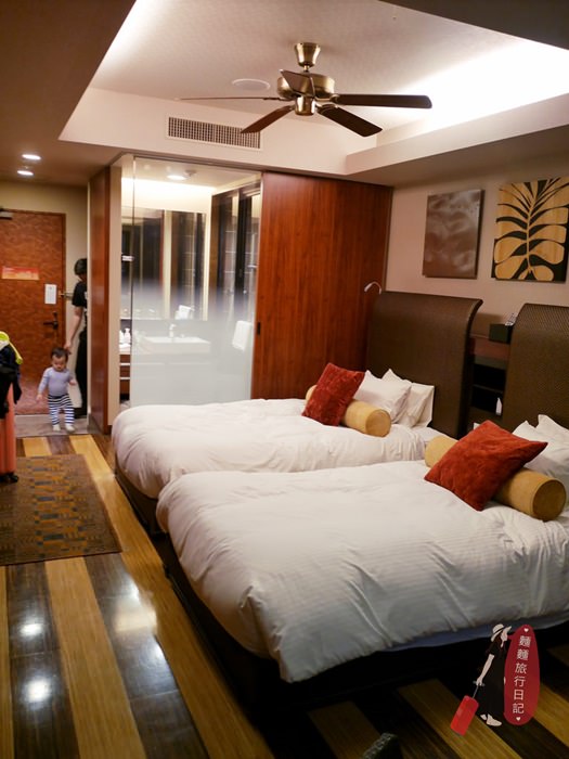 這時的我們還不知道這可是我們東京行最後一次睡到如此大張又蘇胡的床惹,之後在東京市區內的飯店床都好小好小阿!!!!!!!!!!!!!!!迷你到不行(暈),我跟大猴本來就都比較人高馬大,連著遺傳波仔也特別大隻,再加上我們在新竹的家裡就是故意買最大最大的KING SIZE BED,睡一般尺寸的床就已經很痛苦了,現在要睡日本尺寸的床再加上一隻胖胖波卡在中間,大猴說他後面整整一周都覺得腰痠背痛阿(哭)
