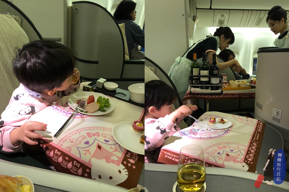 第一次帶波仔跟樂樂搭長途過夜飛機啊!我們要出發展開長達一個月的美西之旅,搭早班飛機從台灣桃園機場飛往美國西岸洛杉磯國際機場,航程總共要12個小時,不知道波仔跟樂樂能不能挺住乖乖在飛機上呢~因為要飛11小時55分鐘,所以村長訂了長榮航空的皇璽桂冠艙,座位空間很大很舒服,座椅可以平躺,隱私性也很足夠!機上的餐點不開玩笑超好吃,不輸去餐廳吃的美食,而且因為長途飛行機上提供了早餐午餐下午茶點心跟晚餐,機上服務也很棒,完全是來享受的!還幸運地搭上了HELLO KITTY班機,雖然我對HELLO KITTY沒有特別熱愛!