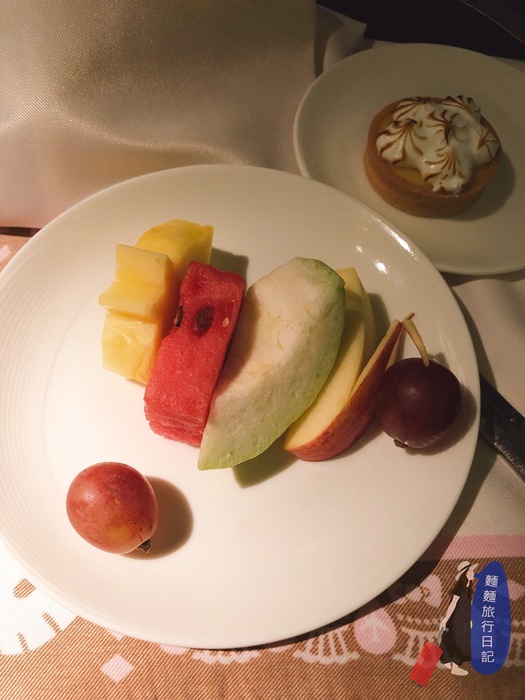 甜點有各式各樣的水果,小巧的一人份~~~還有很多種類的乳酪蛋糕、哈根達斯冰淇淋、餅乾可以選,但我不愛吃甜食,最後選了蛋白糖霜檸檬塔!