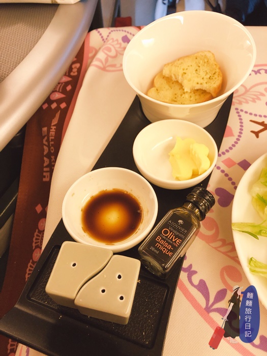 沙拉沒什麼好說,就是一堆生菜跟小番茄哈哈哈,醬料很好吃~空服員會一直問你要不要再來一盤XDD哪吃得下~