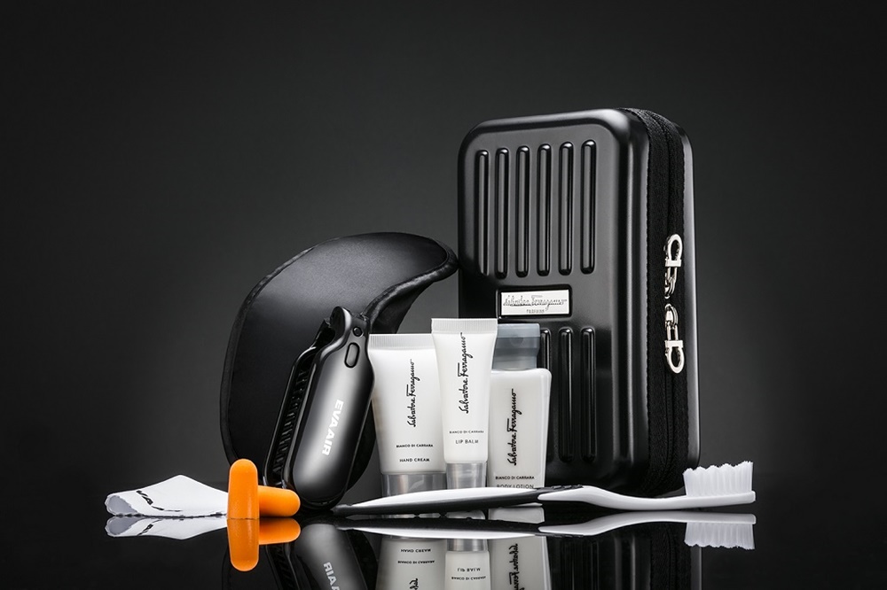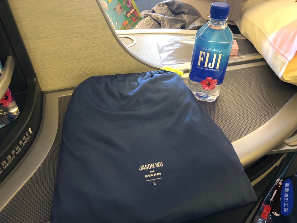 一上飛機就會看見空姐發給你的過夜包、拖鞋跟睡衣,過夜包裡面是簡單的盥洗用物,有旅行護膚組、牙刷、眼罩、耳塞等。