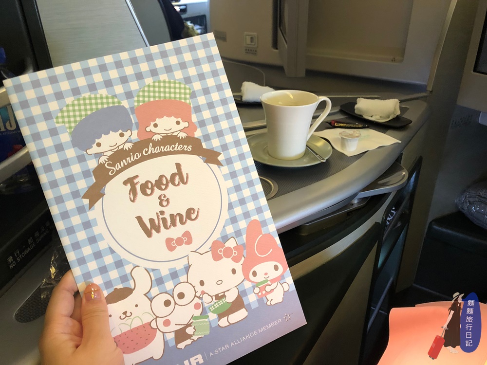 飛機起飛後,空姊又開始忙碌奔波啦~發菜單!午餐時間開始,菜單也是三麗鷗系列。