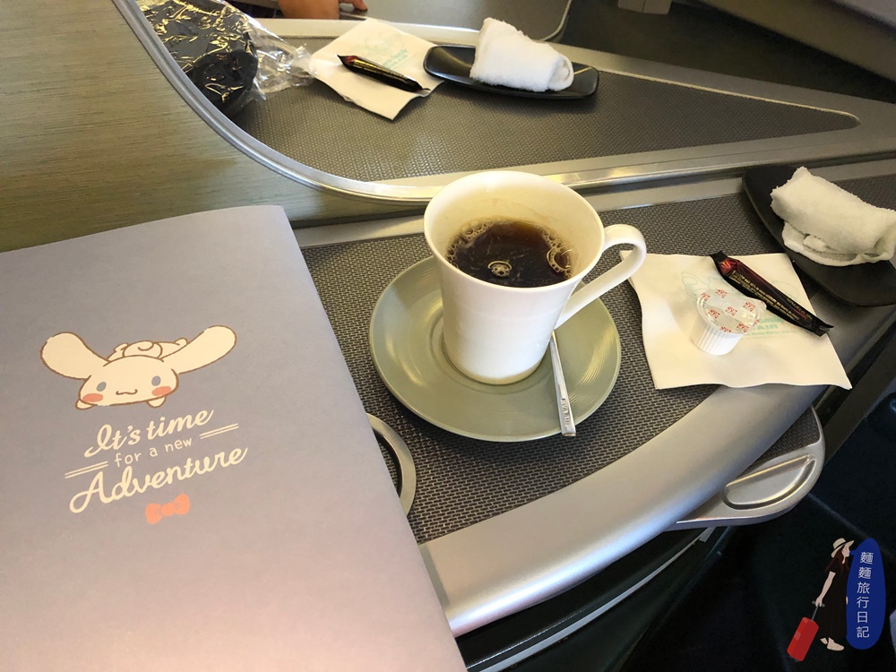 覺得空姐很忙碌啊!上飛機後幫忙置放行李、找位置外,還要發過夜包等,然後起飛前,又來詢問要喝什麼飲料,並附上擦手毛巾!很溫柔很貼心很棒的服務!因為一大早起床搭飛機,先喝杯奶茶壓壓驚!
