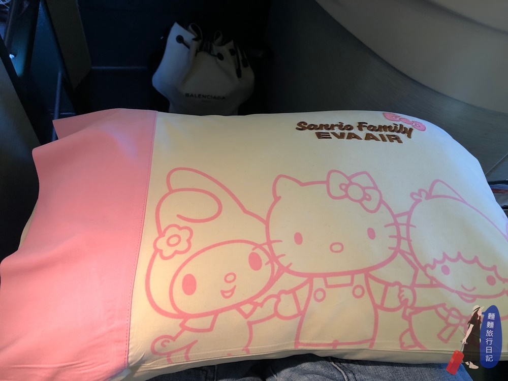 KITTY機上真的是連枕頭都一樣是印有三麗歐圖案的粉色枕頭!