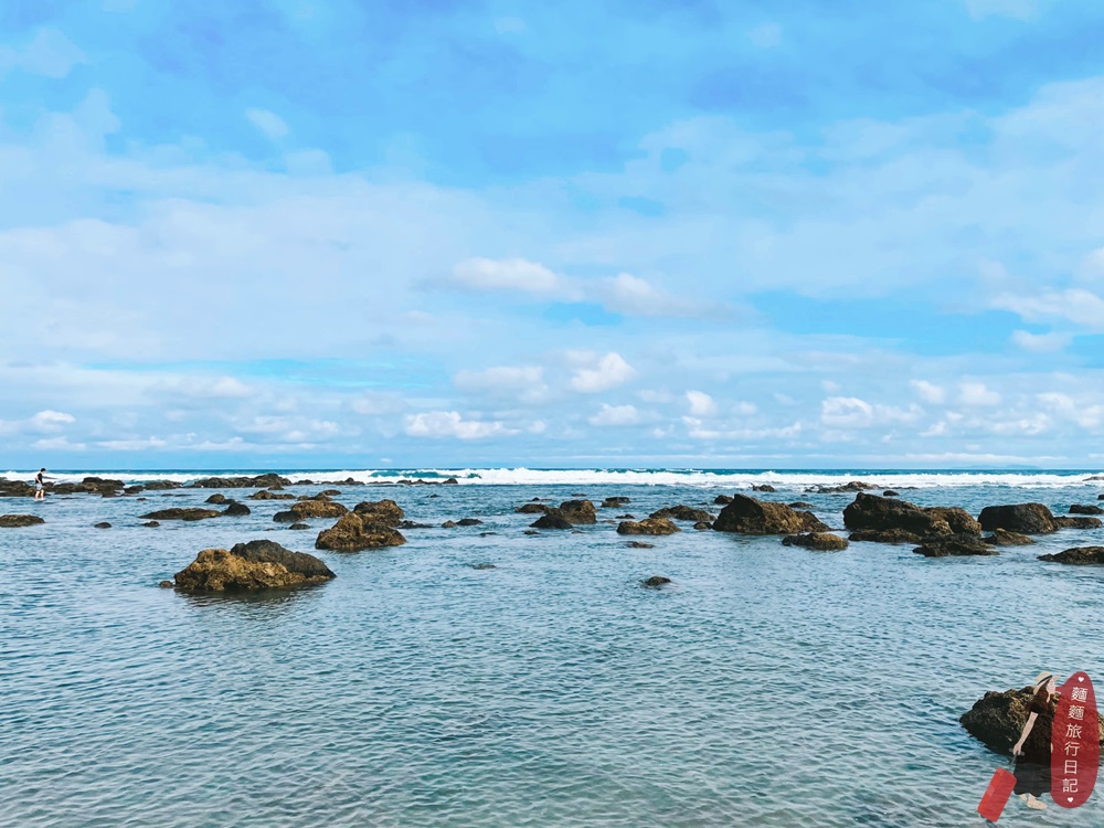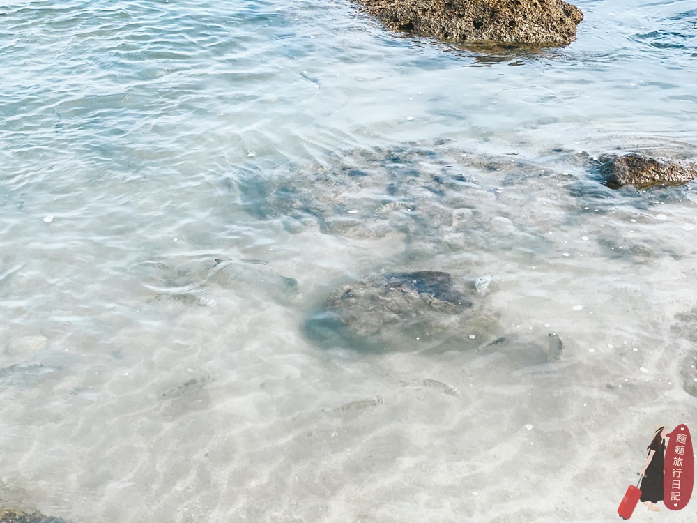 我們是從逐浪海景咖啡 wave caf’e直接走到富山護魚區,護魚區的海灘有規劃一條望海木棧道,海邊旁的景觀咖啡廳大部分都可以直接通到護魚區,木棧道是為了保護及管控護魚的海域環境,真的規劃的滿不錯!我們就在逐浪海景咖啡 wave caf’e 望海 等太陽小一點後,才走到護魚區玩耍!題外話逐浪海景咖啡超級美,大家直接把行程排在一起▶▶逐浪海景咖啡 wave caf’e