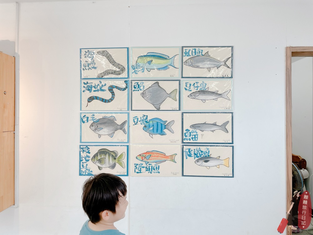 牆上有非常多魚類介紹,每一種魚類的外觀與名稱都標示得很清楚,我讓波仔仔細看看牆上的魚,等一下到海洋步道的時候要找找看這些魚!