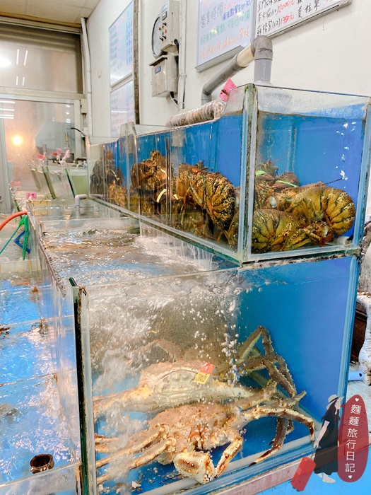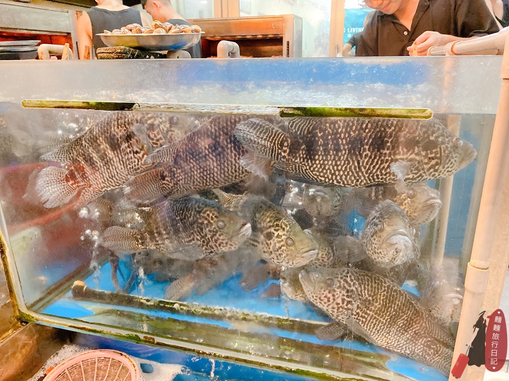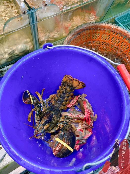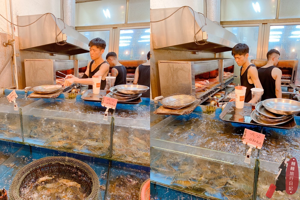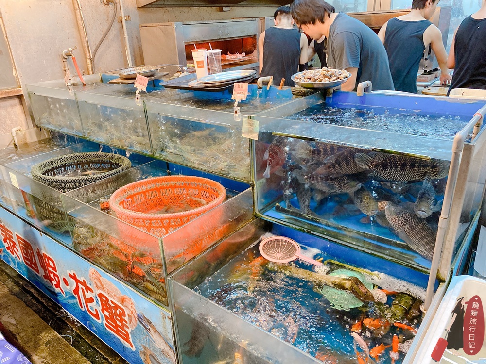餐廳門口有好幾個超大型水族箱疊起來,裡面滿滿都是活跳跳的海鮮,任君挑選。
