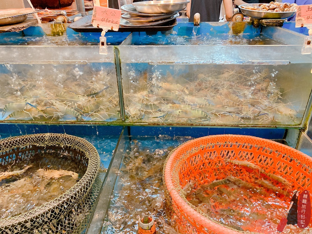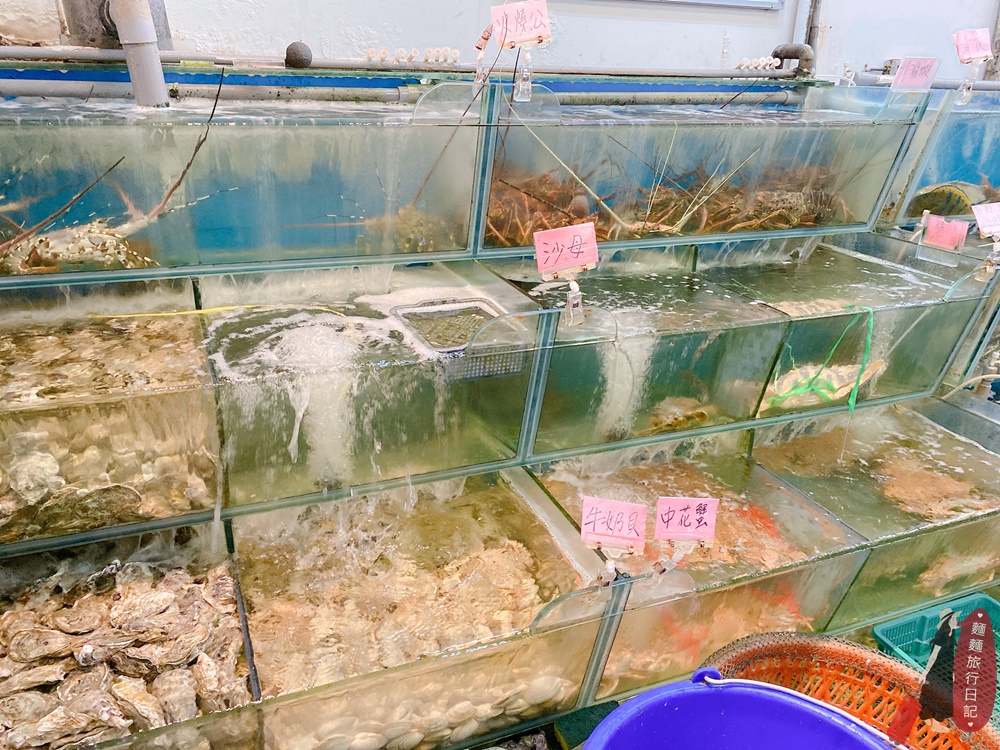 除了蝦啊、魚啊,還有螃蟹、沙母、龍蝦、貝類、帶殼鮮蚵。