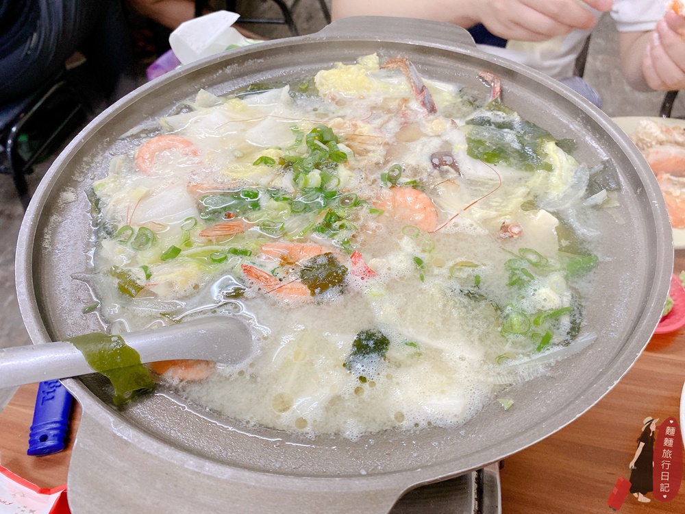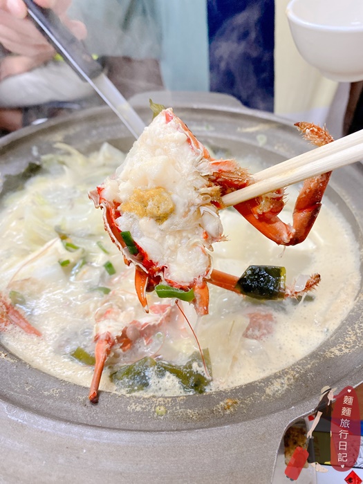 這鍋根本是精華,裡面加了剛剛抓的那隻龍蝦、螃蟹、還有一些蝦子,除了滿滿的海鮮之外,還有蔬菜!湯頭之鮮甜、龍蝦螃蟹之好吃!
