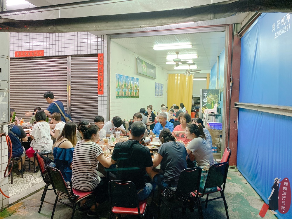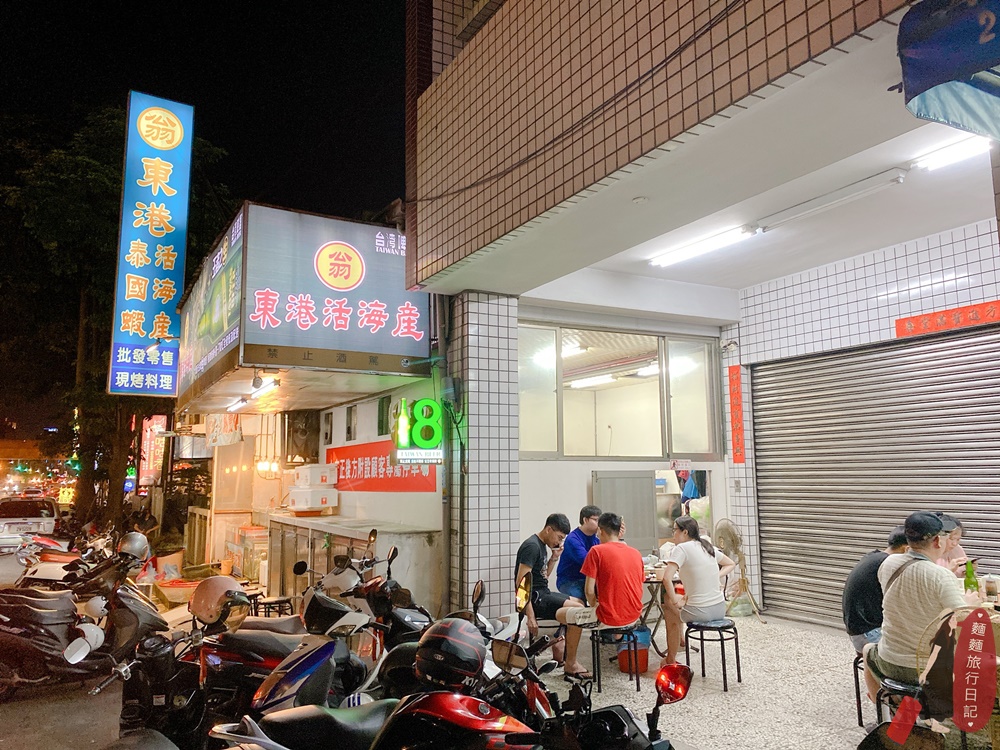東港活海產生意好到在旁邊騎樓也擺了幾桌。
