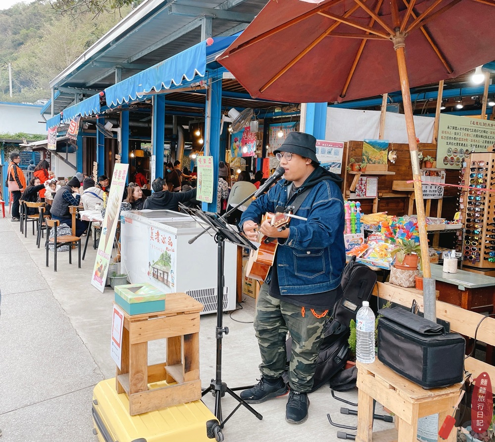 多良車站商店街的氣氛很好,就連街頭藝人唱歌也很好聽!