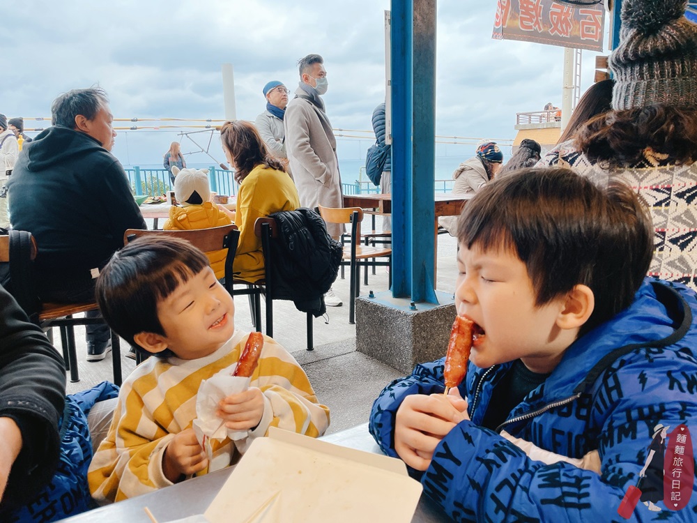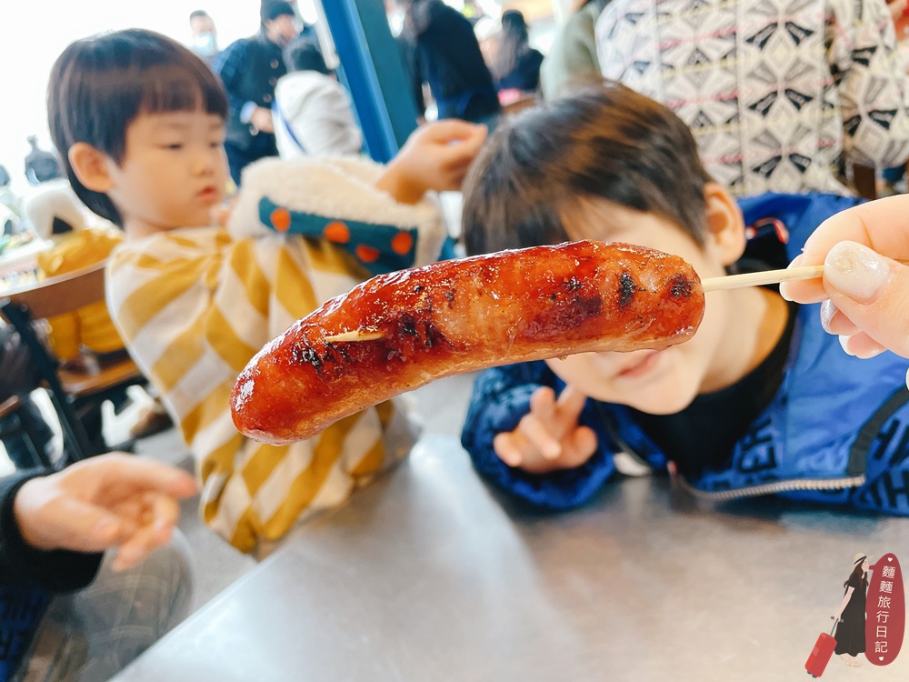 波仔跟樂樂一人一根~熱呼呼的烤香腸吃起來特別有味道!