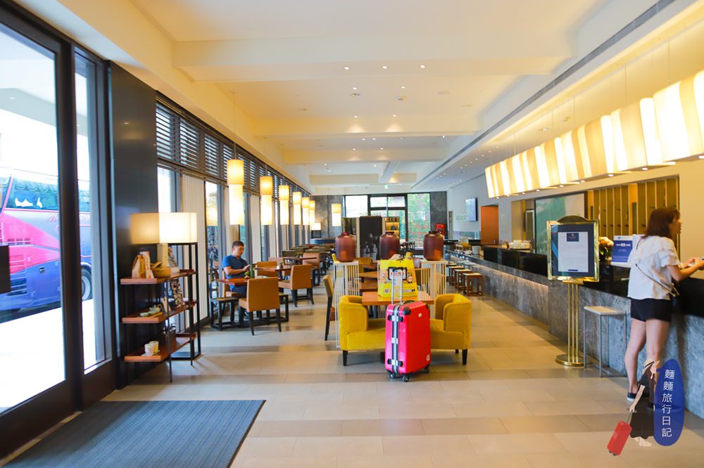 酒店大廳跟一般挑高、氣派的Lobby比較不一樣,一進去雖然沒有挑高的空間感,但是整體溫暖明亮、氣質典雅,村長覺得是一個很有氣質的大廳喔!而且一進門服務員就貼心的上前來安排check-in,以前辦入房手續村長我都要在櫃檯罰站很久,這次居然不一樣,服務人員拿了我們的身分證等訂房明細後,就安排我們在座位區休息~