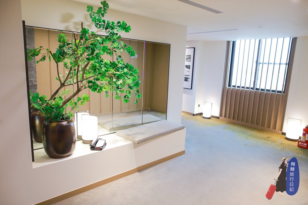 酒店各樓層等電梯處,居然有一個可以讓大家坐著等電梯的空間,旁邊擺著綠色盆栽,好簡單典雅~