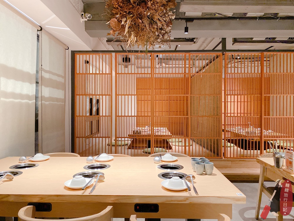 餐桌區、二樓的座位則是比較有隱私的半包廂的座位區,公司聚餐、多人包場的話二樓很適合呀,同.暖選鍋物裝潢也是美美滴,很好拍。