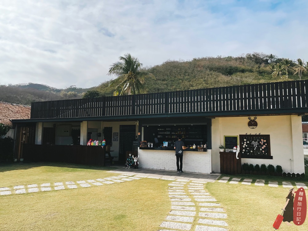 L型的咖啡廳中間片可以讓小朋友盡情奔跑的草皮,面海的那棟玻璃屋是客人的用餐區,另一邊則是咖啡廳製作餐點的區域,大家記得要先到櫃台拿取菜單唷!
