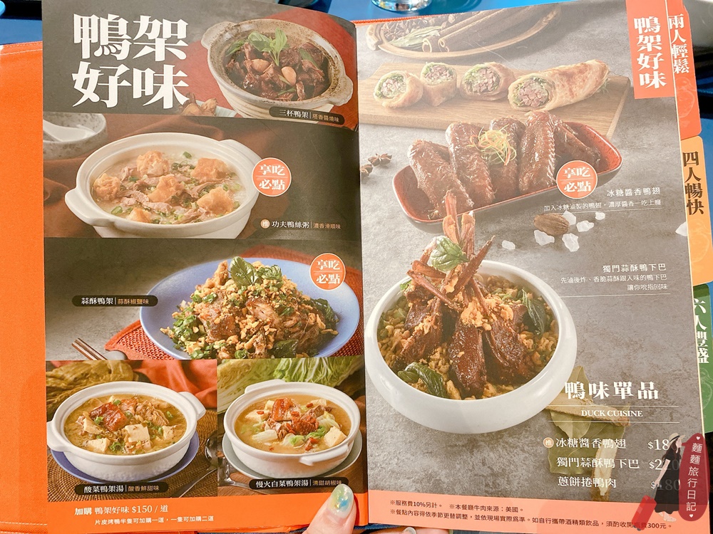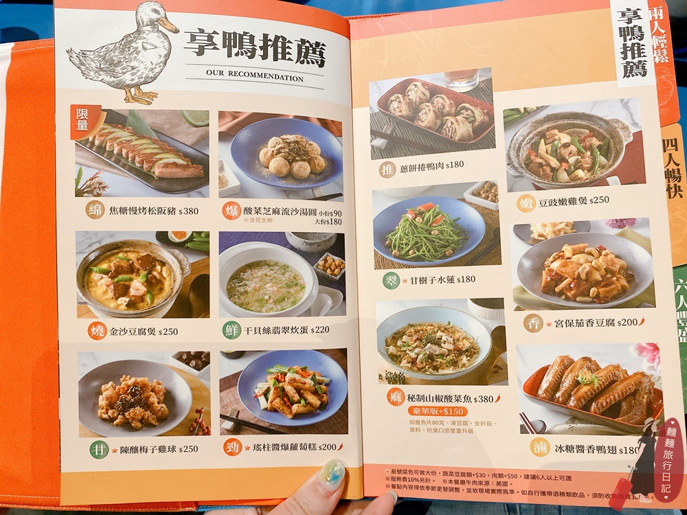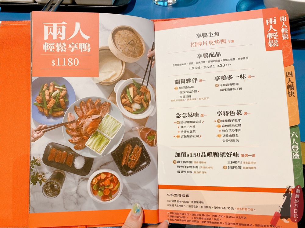 享鴨的菜單分成單點跟套餐!