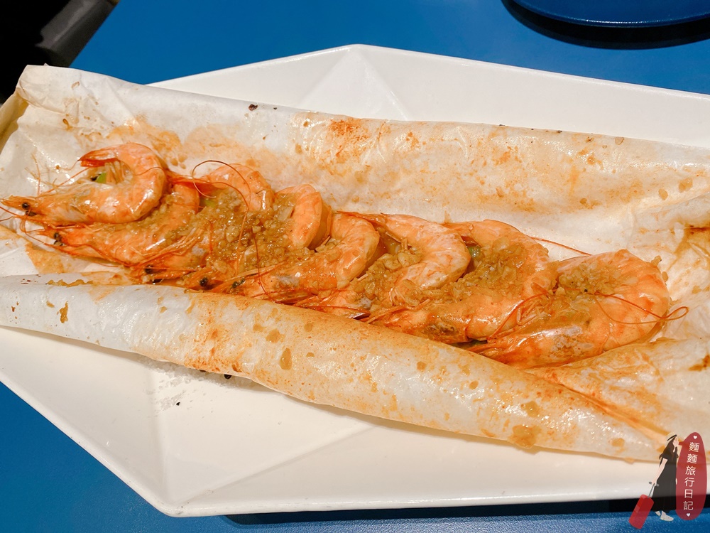 這道菜是單點,因為波仔說他想吃蝦子,於是我們就多點了一道紙包蝦。