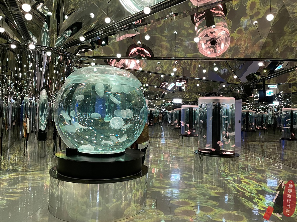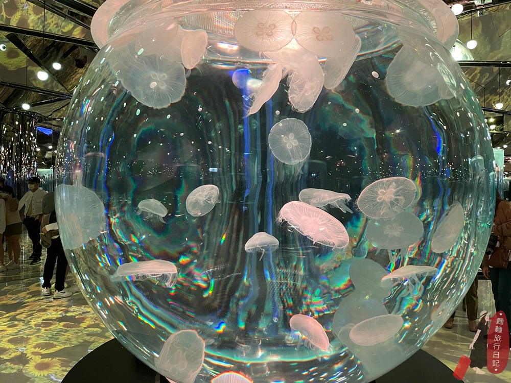 回到2樓展區癒見水母,這展區應該是Xpark最熱門的拍照打卡景點了吧!水族箱裡的透明水母搭配虹光,一秒變成水母萬花筒,超不現實,我來到什麼宮崎駿的奇幻魔法世界了嗎?