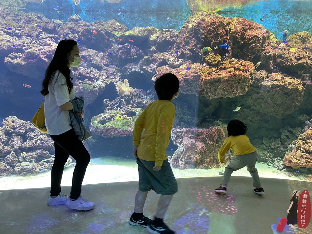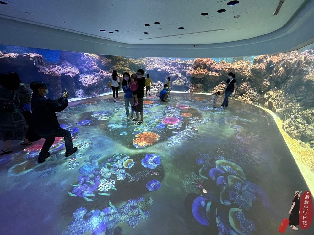 Xpark海生館的動線規畫滿順暢的,順著指標接著就來到三樓的珊瑚潛行展區,台灣身為熱帶海島國家最珍貴的海洋生態就是珊瑚礁啦~展區超級狀光,180度的環景設計,加上投影燈光,珊瑚的絢麗海底的迷幻,超夢幻!
