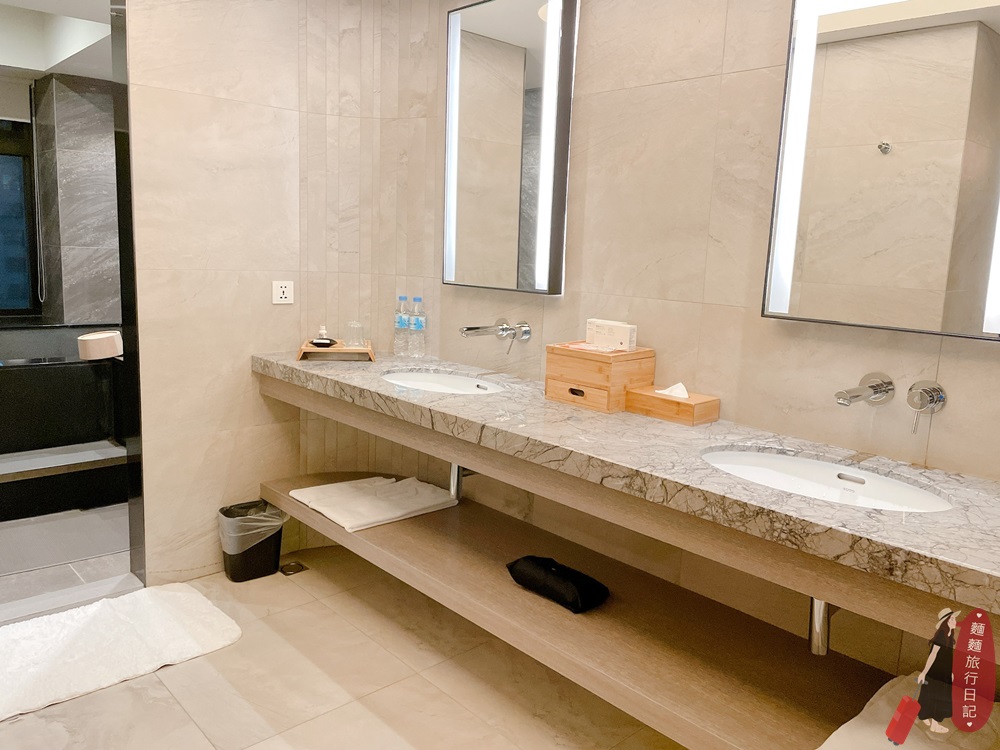 浴室也很大捏!你們看看這個雙洗手台有~多~長~~~馬桶是免治馬桶,讓我們來看看洗面台上有什麼吧!