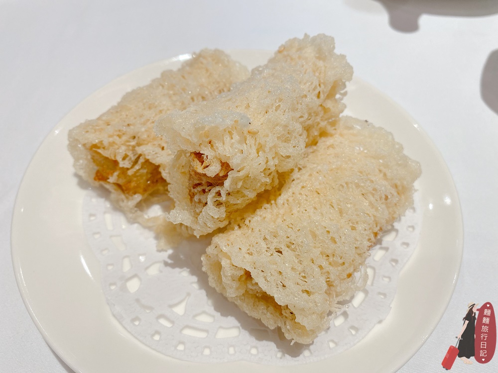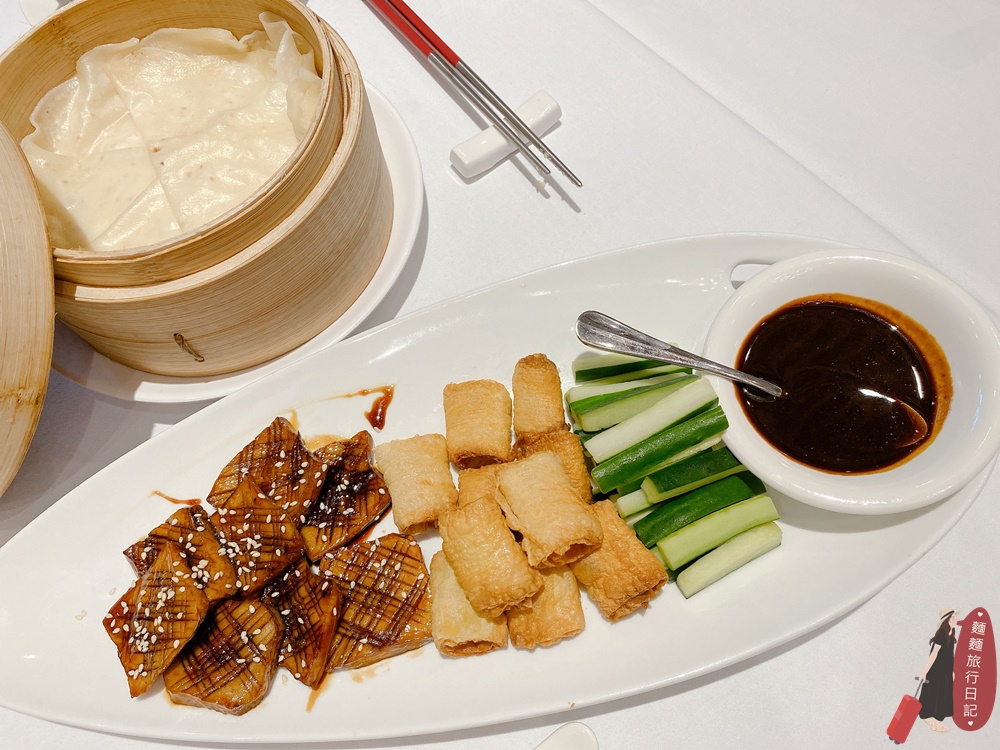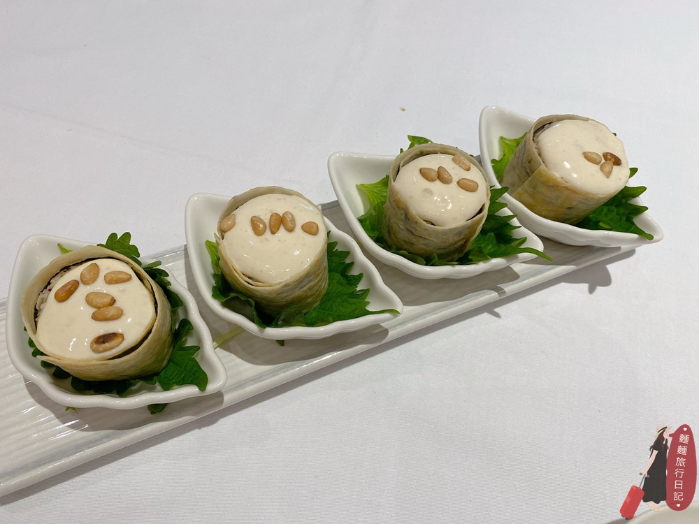 前菜點了松子起司鮮蔬捲,服務生說這道是養心茶樓必點的美食排行第一名,這擺盤也太美了,一份一份的裝在小碟子裡也很好拿取。