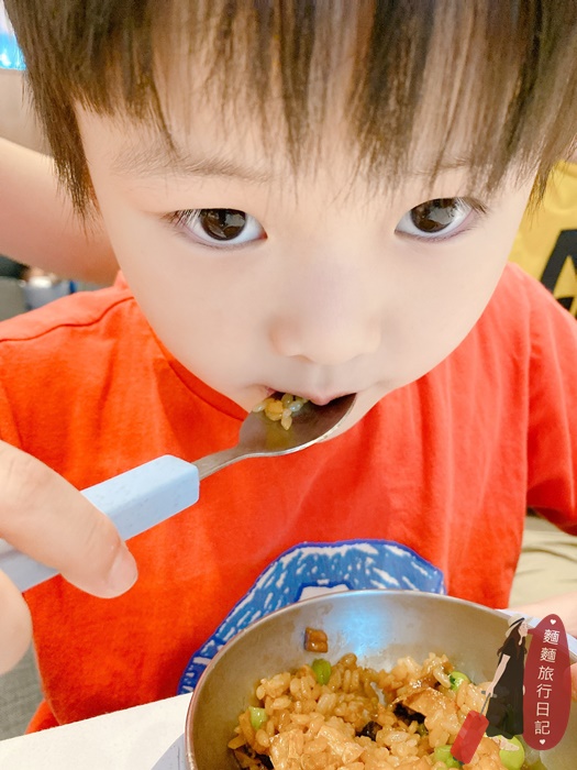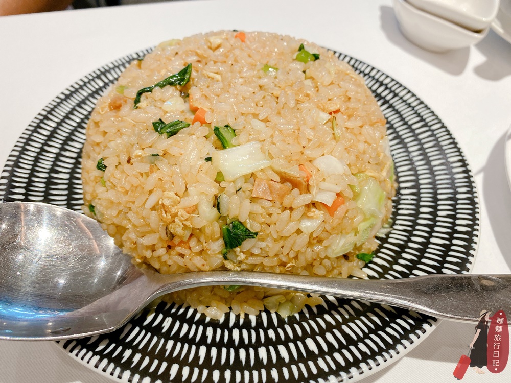 翡翠炒飯用很多蔬菜下去拌炒,有高麗菜、青江菜、鮮菇、紅蘿蔔等,我覺得這道還好,主要是有小孩想說點的炒飯~~~如果想點米食比較建議八寶芋香拌飯。