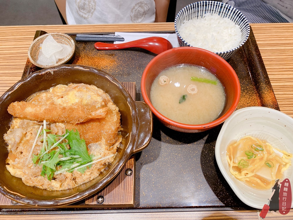 炸好的豬排、炸蝦跟肉片淋上醬汁、雞蛋,很下飯呀!