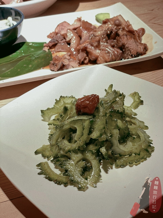 然後是我非常難忘、又特別的山苦瓜,我以為是用炒的欸!結果居然只是用梅子去醃而已,吃起來完全是梅子芭樂的味道,只不過芭樂換成爽脆的山苦瓜,沒想到意外的非常對味!山苦瓜小孩不愛,我直接吃了半盤去~